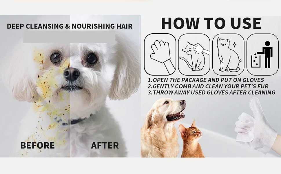 6pcs Unscented Extra Thick Pet Cleaning Wipes for Dogs & Cats,Dog Washing Bathing Deodorizing Grooming Gloves for Daily Care