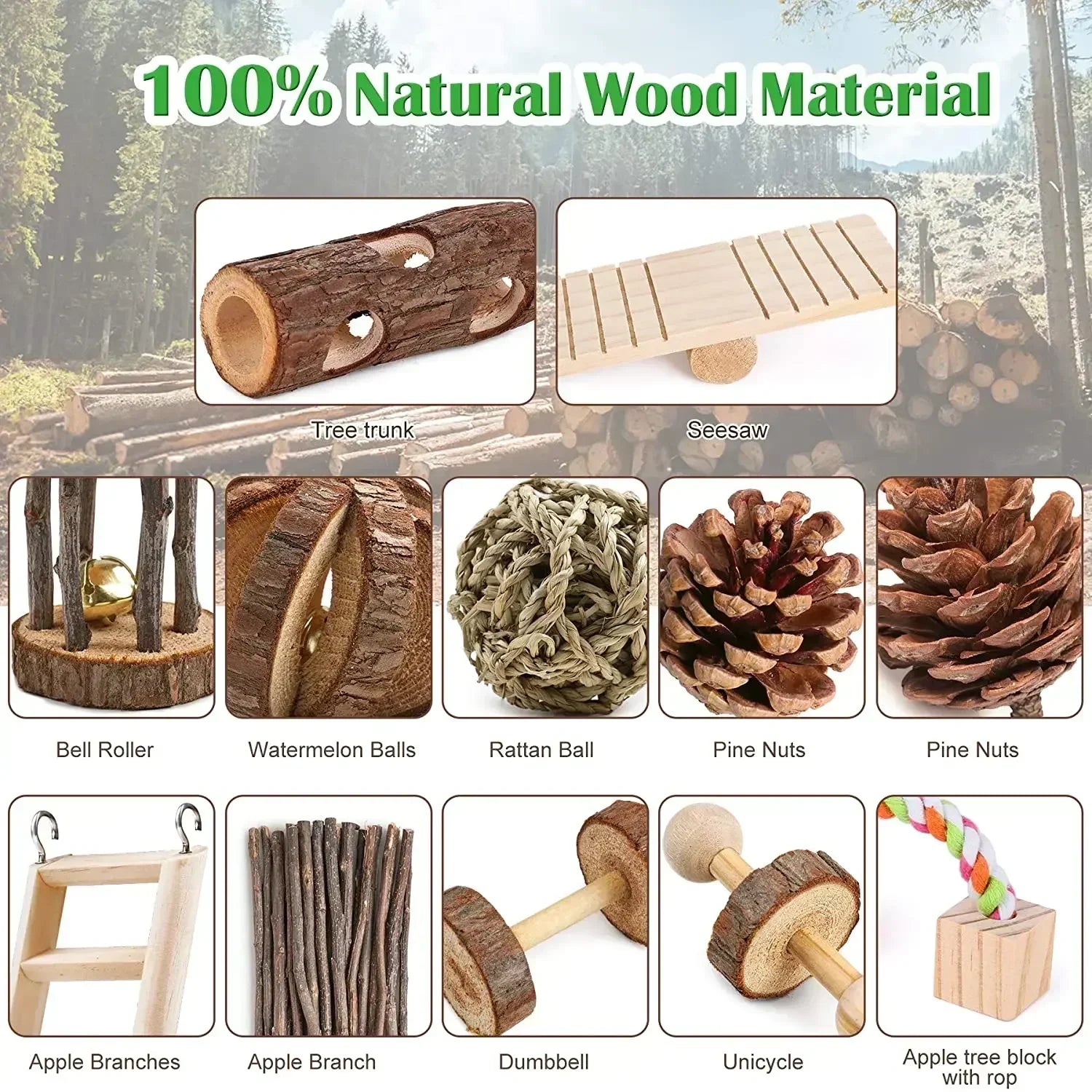 Multiple Sets of Safe Wooden Toys for Small Pets - Hamster, Rabbit, Totoro, Guinea Pig, Parrot. Ideal Daily Necessities